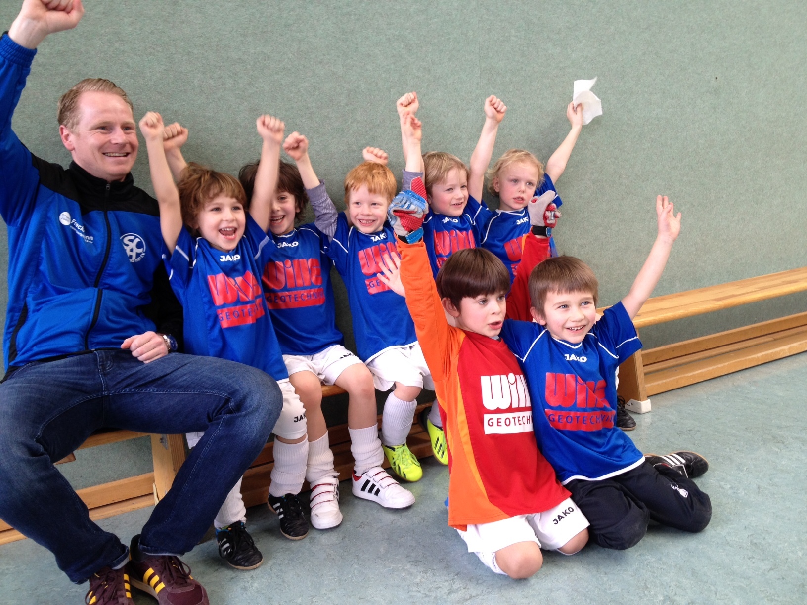 Da hat es mich sehr gefreut gehabt das Erik Gräfe ein Tor geschossen hat. Auch dieses Spiel war erste Sahne von uns wir alle haben uns sehr gefreut gehabt keine einzige Niederlage und noch gar kein Gegentor. Großes Lob an meine Kinder. Jetzt hatten wir eine Pause von 6 Spielen. Ich hatte gehofft hoffentlich verlieren Sie nicht die Lust oder haben keine Puste mehr da die Spieler die ganze Zeit am hin und her laufen waren. 2 Spiele vor unserem vorletzten Spiel hatte ich alle Spieler nochmal darauf hingewiesen das Sie sich nochmal ausruhen sollten denn schließlich können Sie gleich auf dem Spielfeld nochmal sich austoben und wir können heute etwas großes erreichen, ohne Gegentor und als Sieger aus der Halle zugehen. Alle Spieler haben richtig toll diese Anweisung angenommen und hatten sich ausgeruht und die volle Konzentration lag jetzt wieder auf die restlichen 2 Spiele. Hervorragend Jungs. Jetzt hatten wir unser nächstes Spiel gegen unsere Freunde von Lindenberg- Adelebsen 0:0 ist es ausgegangen. Das Spiel bot auch wieder alles große Torchancen schöne Passkombinationen und herrvorragendes Stellungsspiel unserer Abwehr.