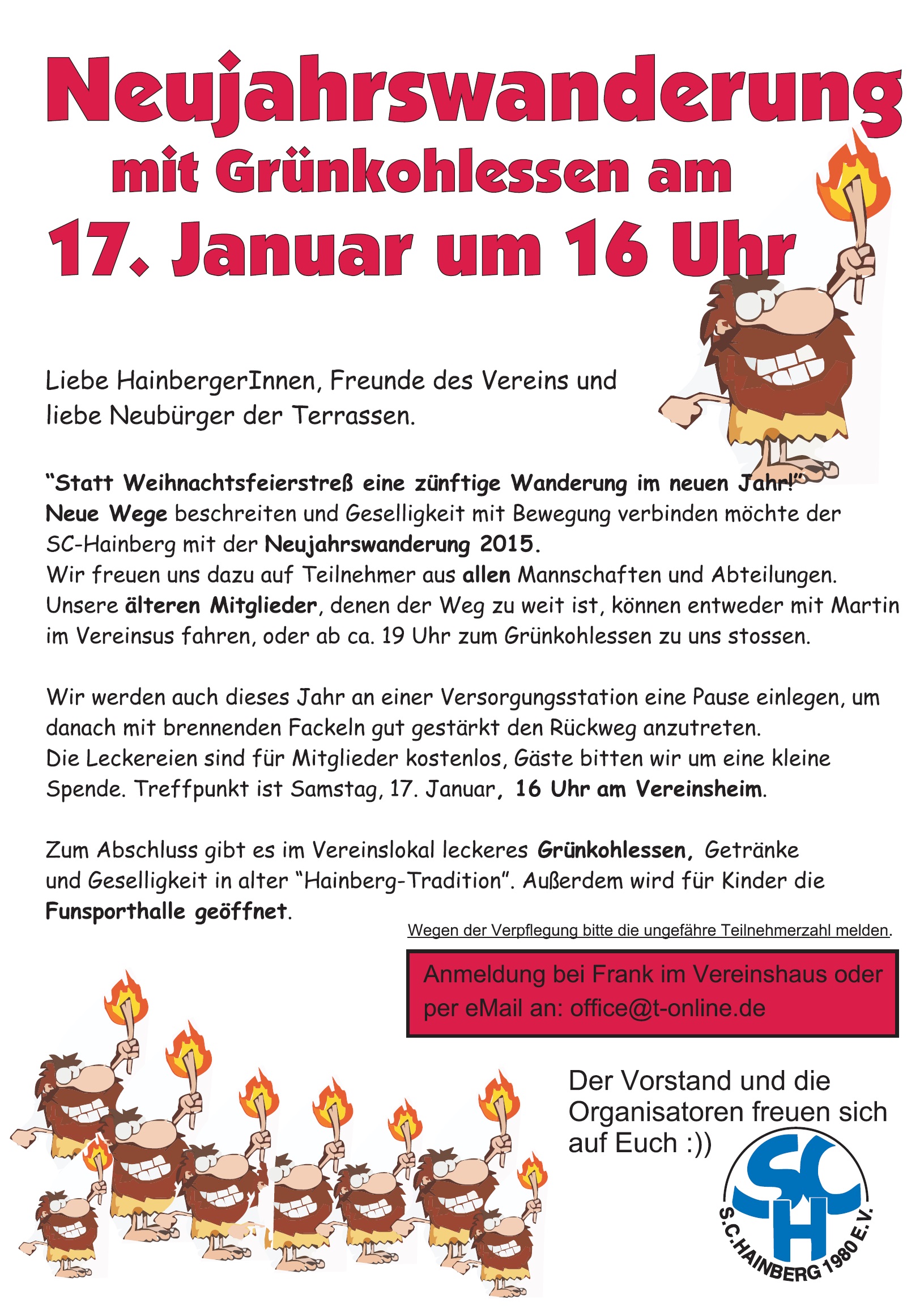 Statt Weihnachtsfeierstreß eine zünftige Wanderung im neuen Jahr! Neue Wege beschreiten und Geselligkeit mit Bewegung verbinden möchte der SC Hainberg mit der Neujahrswanderung 2015.