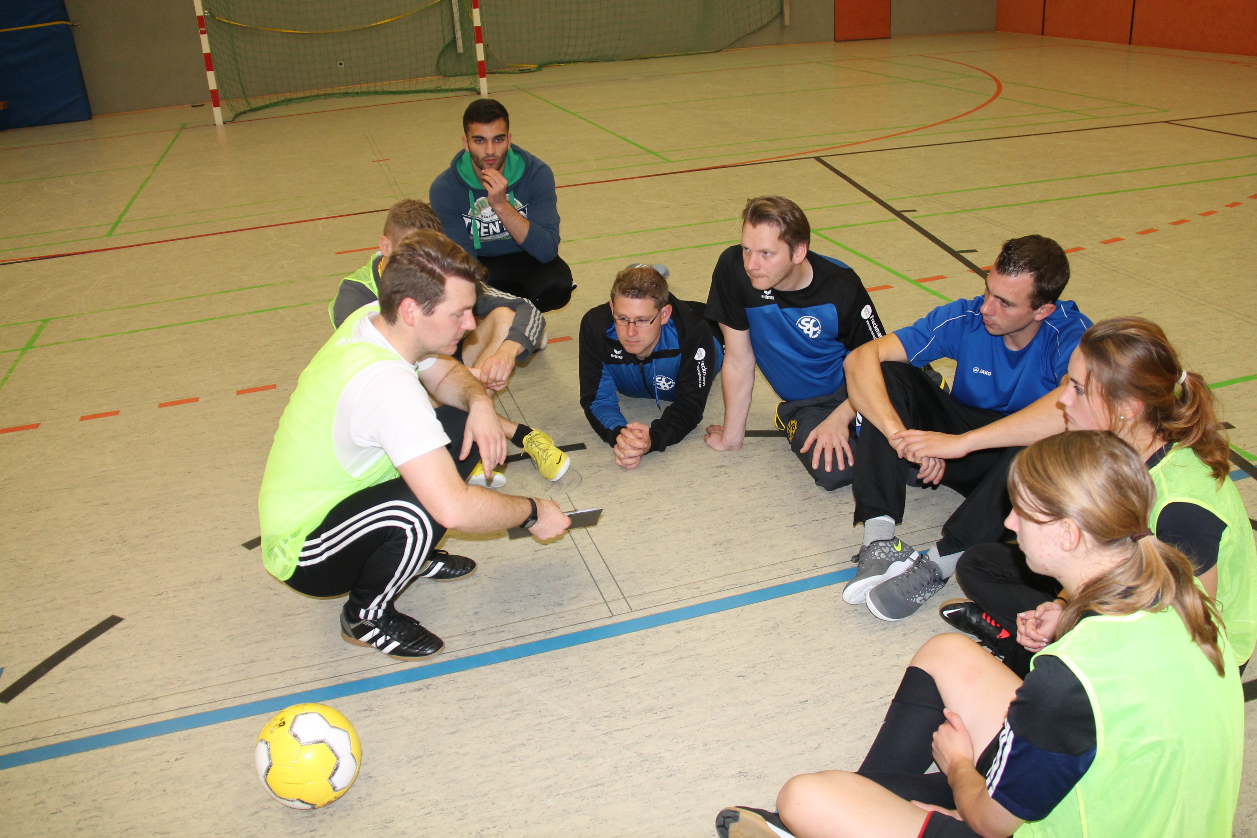 (rm) Erstmals spielen bei den kommenden Hallenkreismeisterschaften alle Teams von den G- bis zu den A-Junioren nach Futsalregeln. Um ihre Teams auf diese Herausforderung vorzubereiten nutzte ein Teil von Hainbergs Jugendtrainern das Schulungsangebot von Kreisauswahltrainer Daniel Otto. Neben praktischen Übungen mit dem normalen Sportgerät und dem Futsalball standen auch taktische Elemente des Hallenspiels auf dem Programm. "Der Futsal-Ball ist kleiner und springt nur halb so hoch wie ein Fußball“ demonstrierte Otto die Spieleigenschaften praxisnah. „Damit springt er genau so hoch wie ein Ball auf Rasen“ so Otto weiter. Das helfe technisch schwächeren Spielern und mache technisch versierte Kicker noch stärker. „Die Ballmitnahme ist auf jeden Fall leichter, das feste Schießen und lange Passen aber schwieriger“ meinte Lars Willmann nach den ersten Übungen.