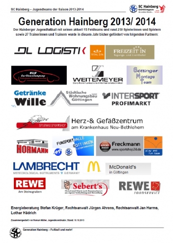 Die Generation Hainberg sagt "Danke" für diese tolle Unterstützung, ohne die unsere Jugendarbeit nicht so ein Niveau haben könnte!