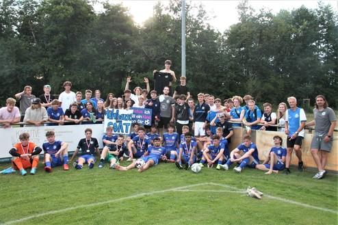 Erinnerungsbild mit den Fans - Hainbergs A-Junioren: Letztes Bild als Kooperationsteam; ab nächster Spielzeit starten sie unter dem Dach des JFV 37 Göttingen