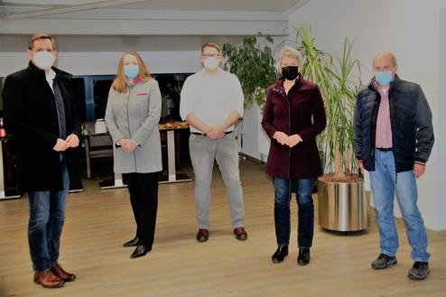 Quartiersmanager Lars Willmann (Mitte) und Hainbergs Vorsitzender Jörg Lohse (rechts) informierten Wirtschaftsminister Olaf Lies (li), Landtagspräsidentin Gabriele Andretta und Oberbürgermeisterin Petra Broistedt (2.v.r.) über die Ergebnisse und Perspektiven der "Qauartiersarbeit Zietenterrassen"