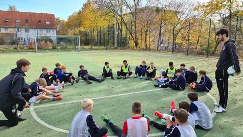 Zusätzlich stand ganz viel Fußball auf dem Programm: Unter Anleitung der fast vollständig mit der Fußball-C-Lizenz Breitensport ausgestatteten Teamer, stärkten die jungen Sportler ihre Kompetenz im 1vs.1, den Torabschluss und ihre Spielinteligenz im Rahmen vieler Spielformen und ausgiebiger Turniere.