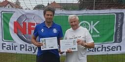 (red) Gleich zwei Ehrungen konnten Hainbergs Jugendkoordinator Roman Müller aus den Händen Neidhard Paul vom Bezirksjugendausschuss in Braunschweig entgegennehmen.