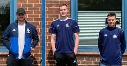 Sechs Hände - drei Köpfe - eine Auszeichnung: Hainbergs eFootballer der ersten Generation; Allesandro Garofalo, Robin Gröling und Levin Sundermann (v.l.)