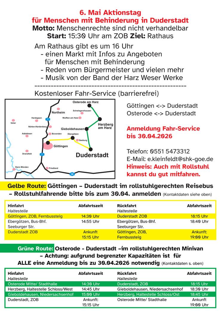 Bildbeschreibung: Flyer Rückseite zum Protesttag der Menschen mit Behinderung am 6. Mai 2026 in Duderstadt