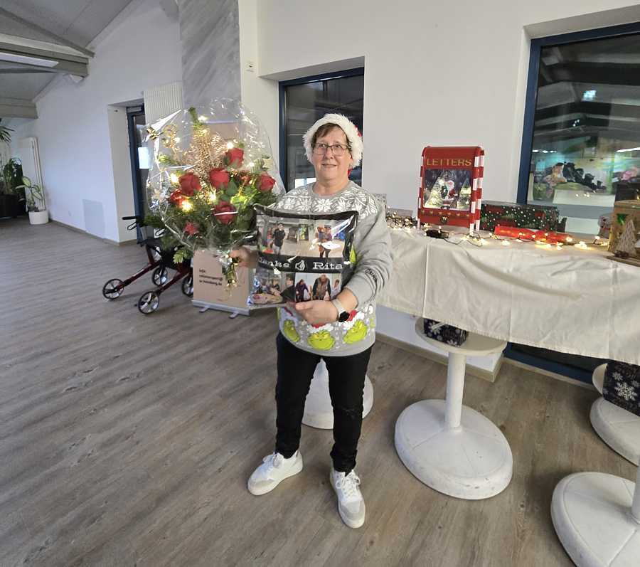 Rita Förster unterstützt das Team Rollatorsport und die Seniorengymnastik 60+ light seit geraumer Zeit wo es nur geht. Egal ob wir unsere Übungseinheiten im Vereinshaus oder im EK Weende haben Rita ist mit dabei. Wenn wirklich mal eine Übungsstunde geblockt werden muss springt Sie spontan ohne wenn und aber ein. Sind wir mit einem Infostand unterwegs so ist auf Rita wirklich immer Verlass. Für diesen unermüdlichen, ehrenamtlichen Einsatz haben die Teilnehmer und das Team ihr während der diesjährigen Weihnachtsfeier mit einem Blumenstrauß und einer Karte in Form eines Kissens ganz herzlich Danke gesagt. So ein toller Einsatz und so viel gute Laune bei der Sache sind in der heutigen Zeit nicht mehr selbstverständlich. Liebe Rita es war uns allen sehr wichtig dir einmal Danke zu sagen.