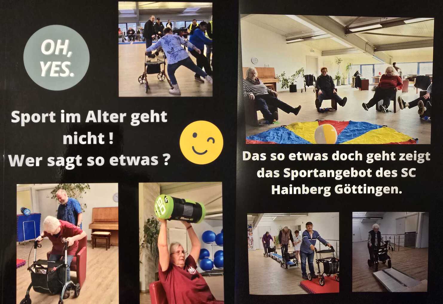 Das so etwas doch geht zeigen die extra auf diese Personengruppe abgestimmten Sportangebote beim SC Hainberg. Mit dem Rollatorsport und der Seniorengymnastik 60+ light bietet der Verein Personen, die oft leider von der Gesellschaft etwas vergessen werden, eine Möglichkeit sich auch noch aktiv am Vereinsleben zu beteiligen. In diesen Gruppen spielt weder das höheres Alter noch eine körperliche Einschränkung eine Rolle. Wichtig ist das der Teufelskreis Altersisulation durchbrochen wird. Die Übungsstunden sind so gestaltet das jeder die Übungen schafft und es macht auch immer wieder aufs Neue richtig Spaß. Die körperliche Betätigung ist auch im Alter für die Gesundheit nicht zu verachten. Also Sport im Alter geht doch ! Einfach mal ausprobieren. Wer Spaß hat sich einer unserer Gruppen anzuschließen ist jederzeit herzlich willkommen.